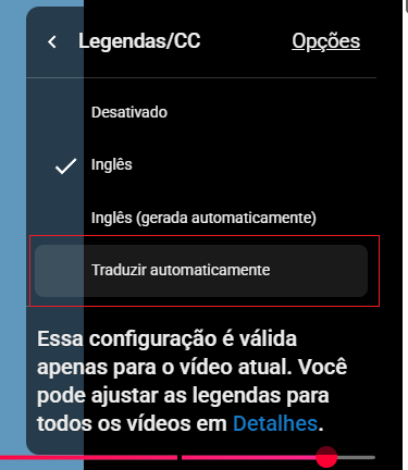1. Ative as Legendas: No canto inferior direito do player de vídeo, clique no botão "CC". Inicialmente, a legenda aparecerá no idioma original do vídeo (geralmente inglês).
